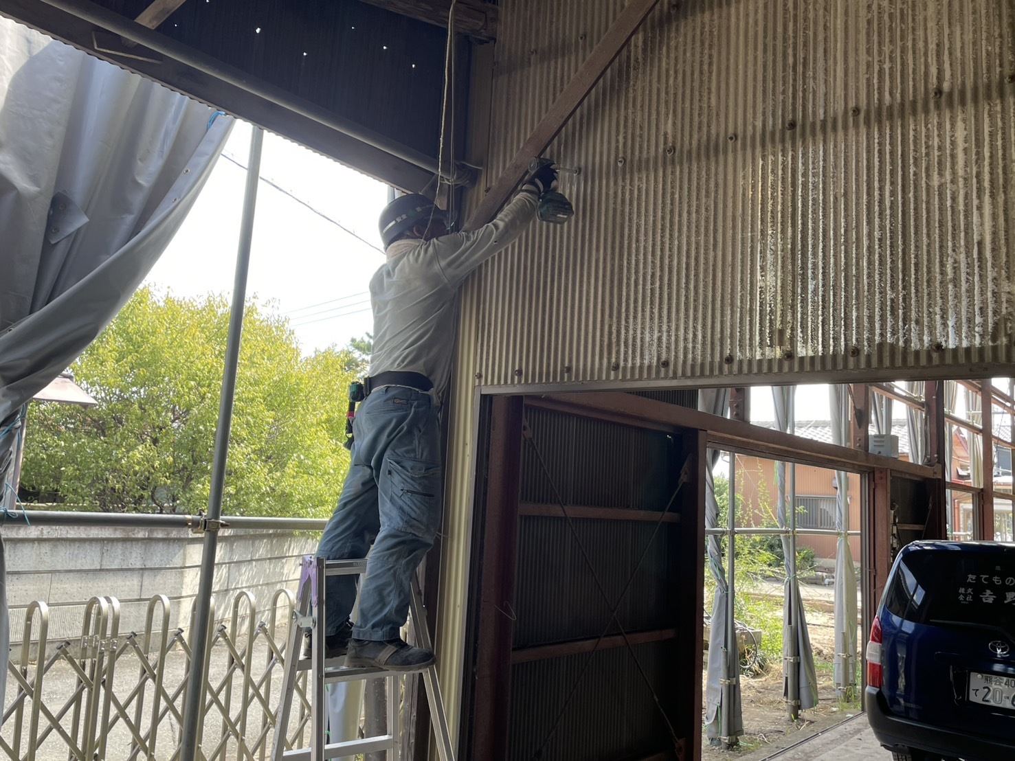 その 2 防音シート設置及び瓦下ろし